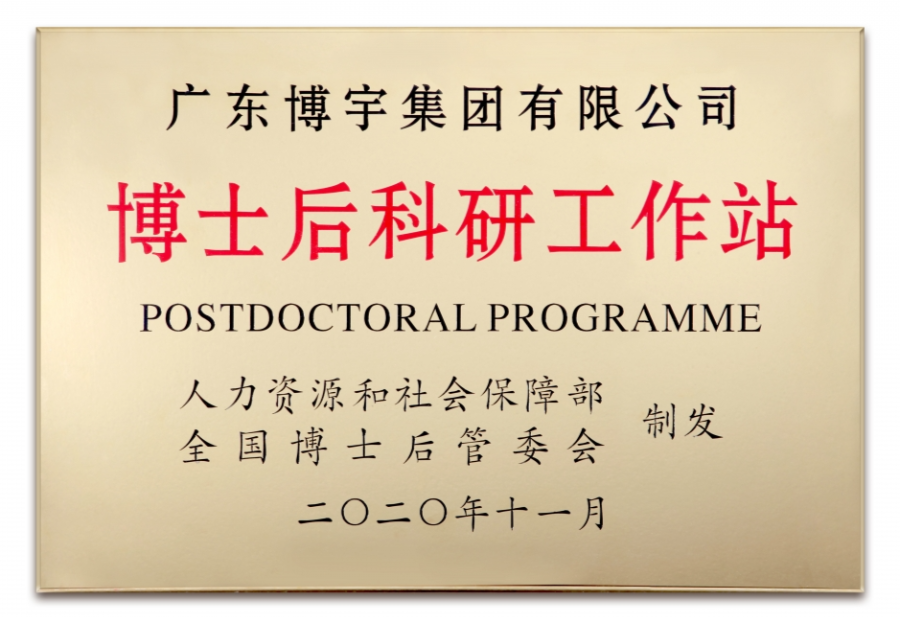 2020年11月27日,根據人力資源和社會保障部、全國博士后管理委員會《關于批準中國科學技術大學先進技術研究院等497個單位設立博士后科研工作站的通知》(人社部函〔2020〕108號),廣東博宇集團有限公司獲批設立博士后科研工作站。