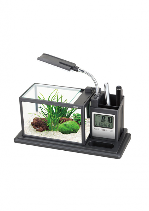 • 低噪聲潛水泵, 內置底部過濾,清潔水質污物及培養有益細菌(硝化細菌),LED臺燈,電子萬年歷,筆筒為一體的多功能筆筒;
